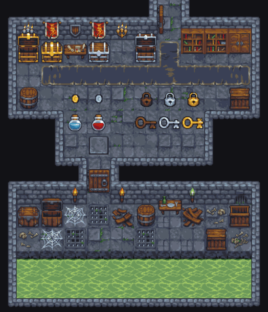 This pack includes everything you need to start prototyping a dungeon crawler or roguelike: